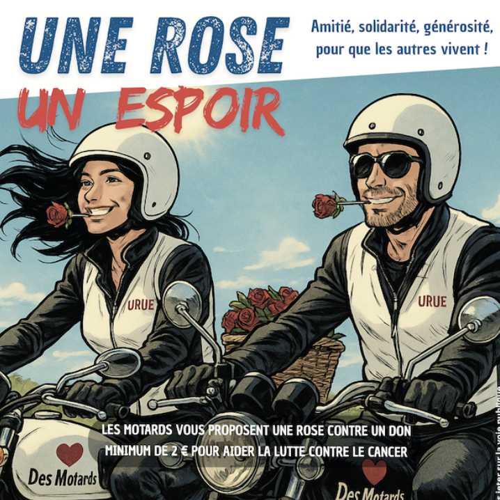 Durant tout le week-end, des motards bénévoles sillonneront les rues de la commune pour proposer aux habitants une rose, en échange d’un don minimum de 2 euros. Derrière ce geste simple se cache une cause essentielle : soutenir la lutte contre le cancer.