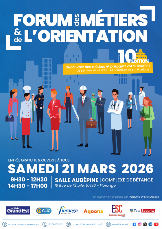 Organisé au complexe de Bétange – salle Aubépine, ce forum permettra de découvrir une grande diversité de métiers et de parcours professionnels grâce à la présence de nombreux intervenants et professionnels.