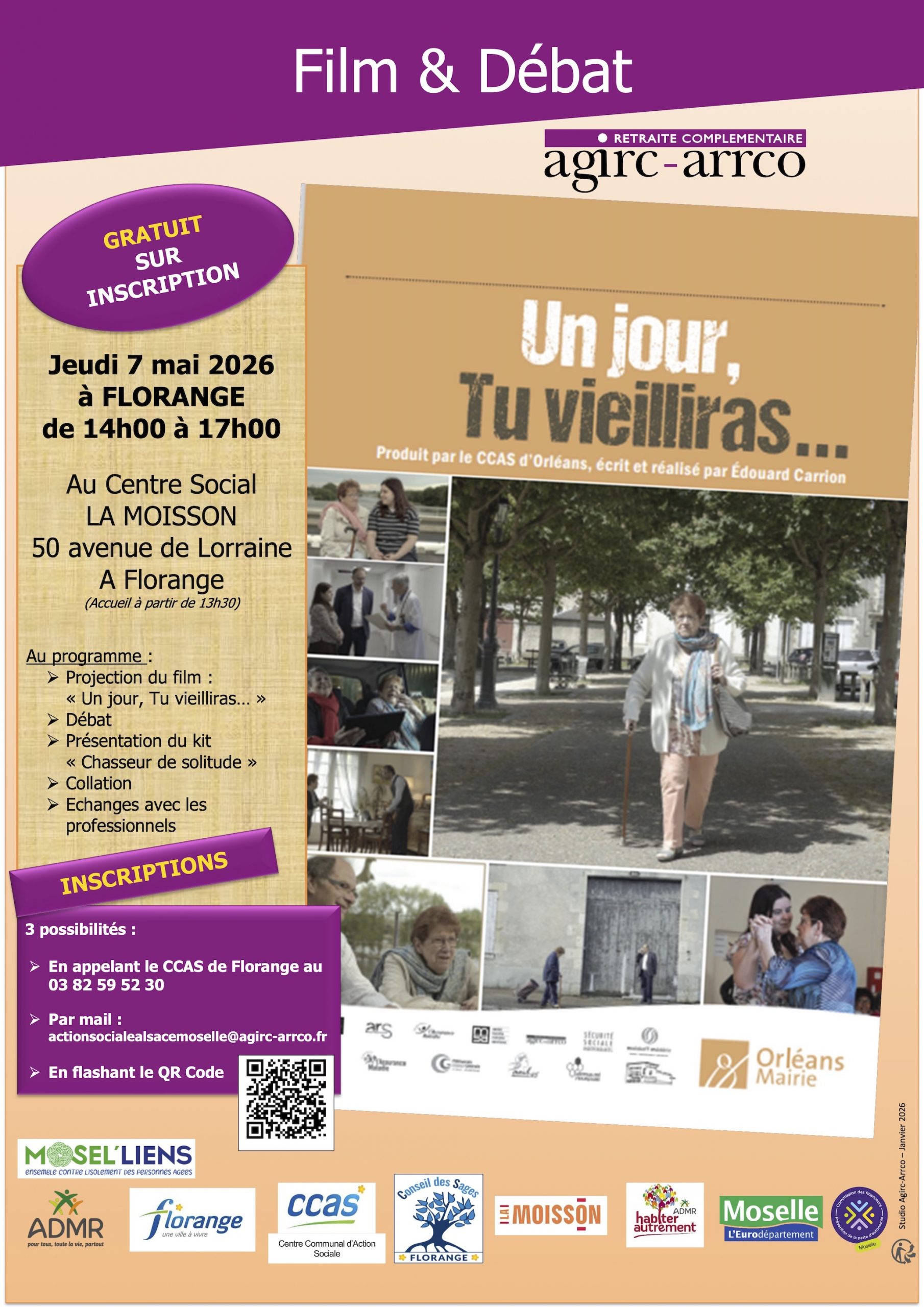 La Ville de Florange, en partenariat avec le CCAS et l’Agirc-Arrco, vous invite à participer à un après-midi “Film & Débat” autour d’un sujet de société essentiel : le vieillissement et l’isolement.